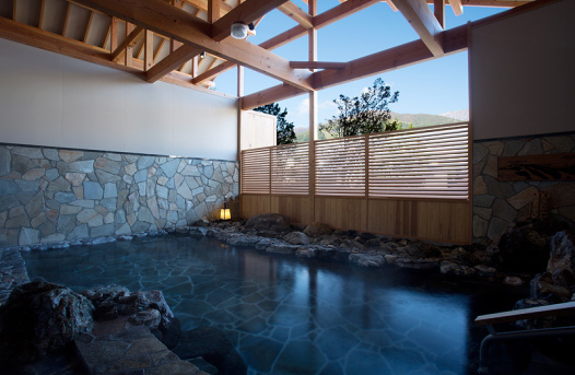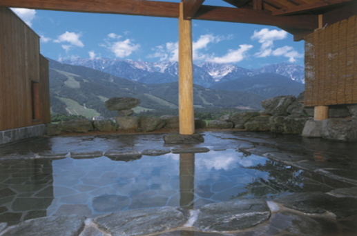 北アルプスを遙かに望む露天風呂で、絶景を独り占め。