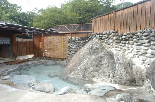 近くの松川の流れに耳を澄ませ、褐色のにごり湯をお楽しみください。